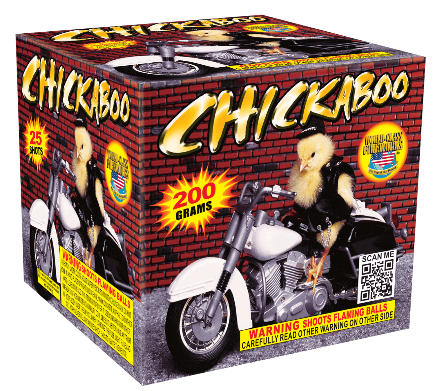 You’ll attract all the chicks (and others, too) with Chickaboo! Red pearls and shimmery tails of fire will impress your entire audience when you light up this 25-shot stunner. It’s 4-shot finale will seal the deal and make you glad you didn’t pass this one up!