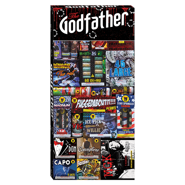 This huge assortment weighs in at over 100 pounds and holds everything you want for your celebration. It’s has 500 grams, artillery shells, multi-shots, fountains. You want it, it’s probably already in The Godfather. Bring your truck!